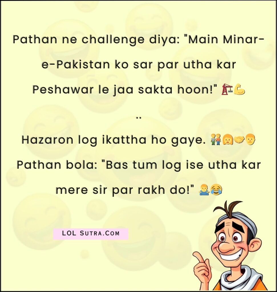 Ek Pathan ke paas 100 rupay ka jaali note tha, jis mein Quaid-e-Azam ki topi nahi thi. 💵