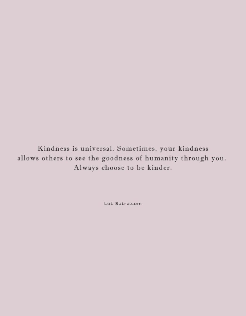 “Kindness is universal. Sometimes, your kindness allows others to see the goodness of humanity through you. Always choose to be kinder.