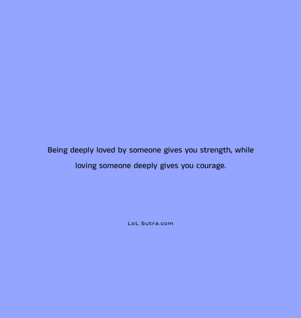 Download Being deeply loved by someone gives you strength, while loving someone deeply gives you courage.COPY Previous Content item Terrifying love.. Next Content item Honor.. More like this