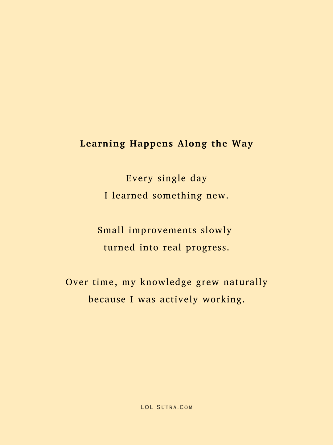 Use the knowledge and resources you already have. Improve slowly. Learn continuously. Over time, small improvements create huge results.