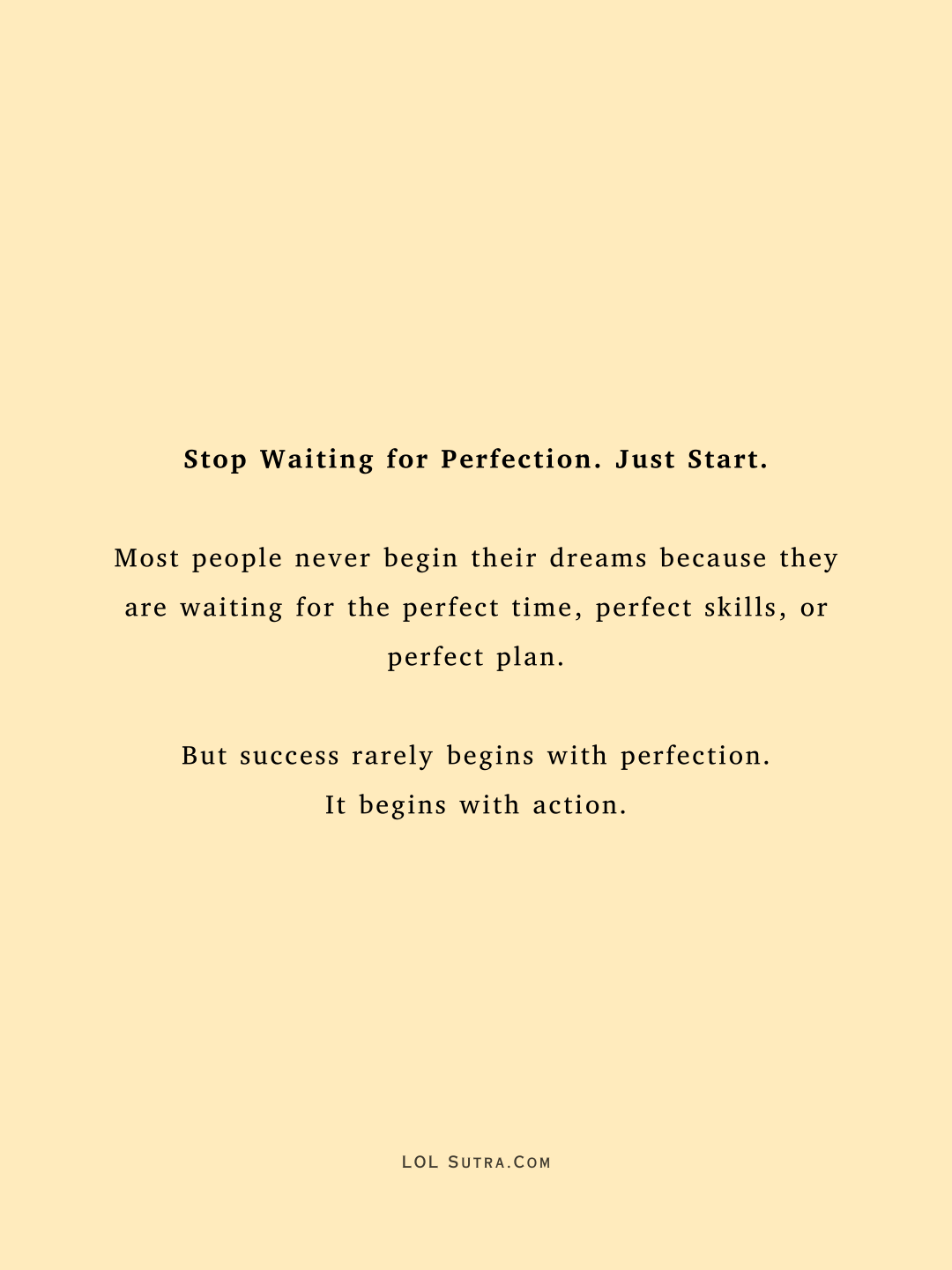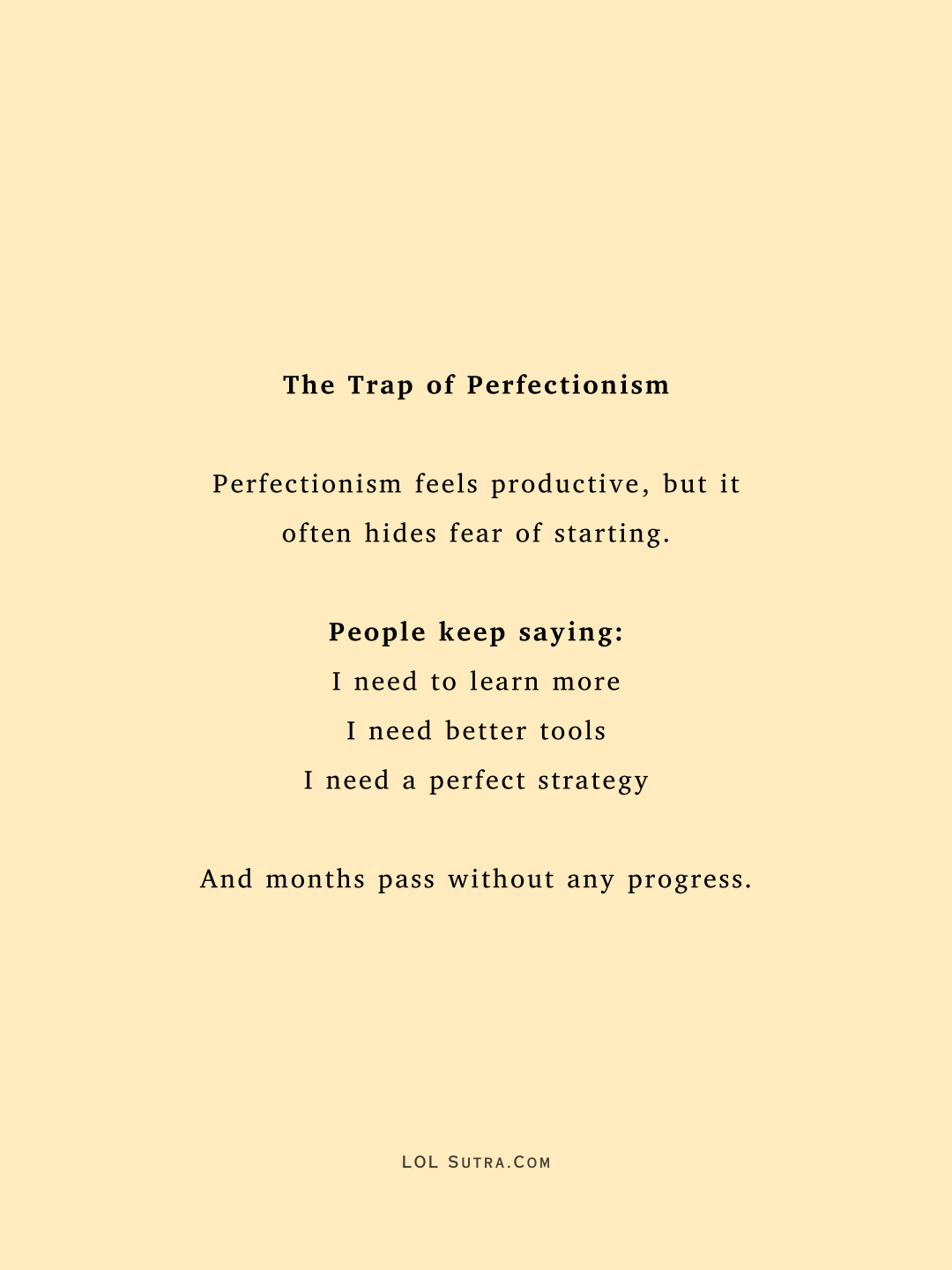 perfectionism, why perfectionism is bad, stop perfectionism, imperfect start success, why you should start before perfect, progress over perfection, lol sutra, self help blog,